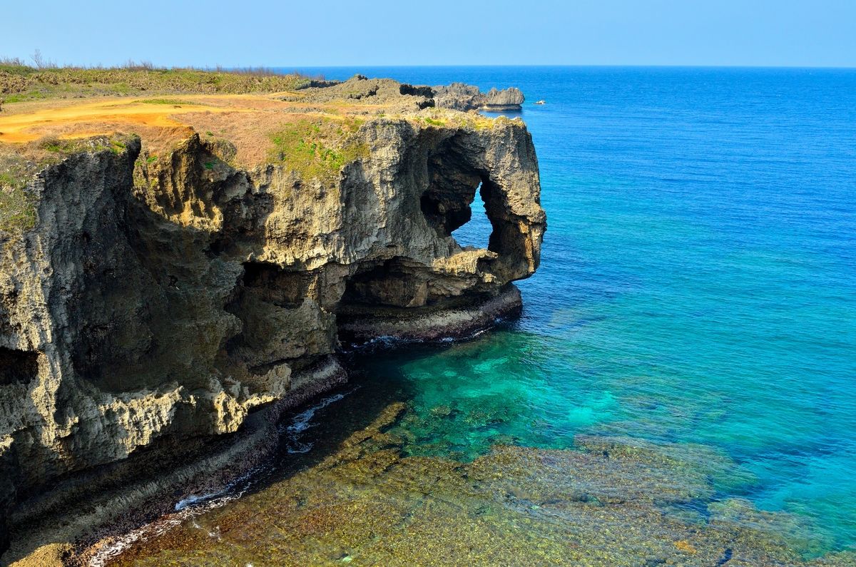 青の洞窟(真栄田岬)は観光性が高く透明度の良い日には光のカーテンが見られる人気スポットです。