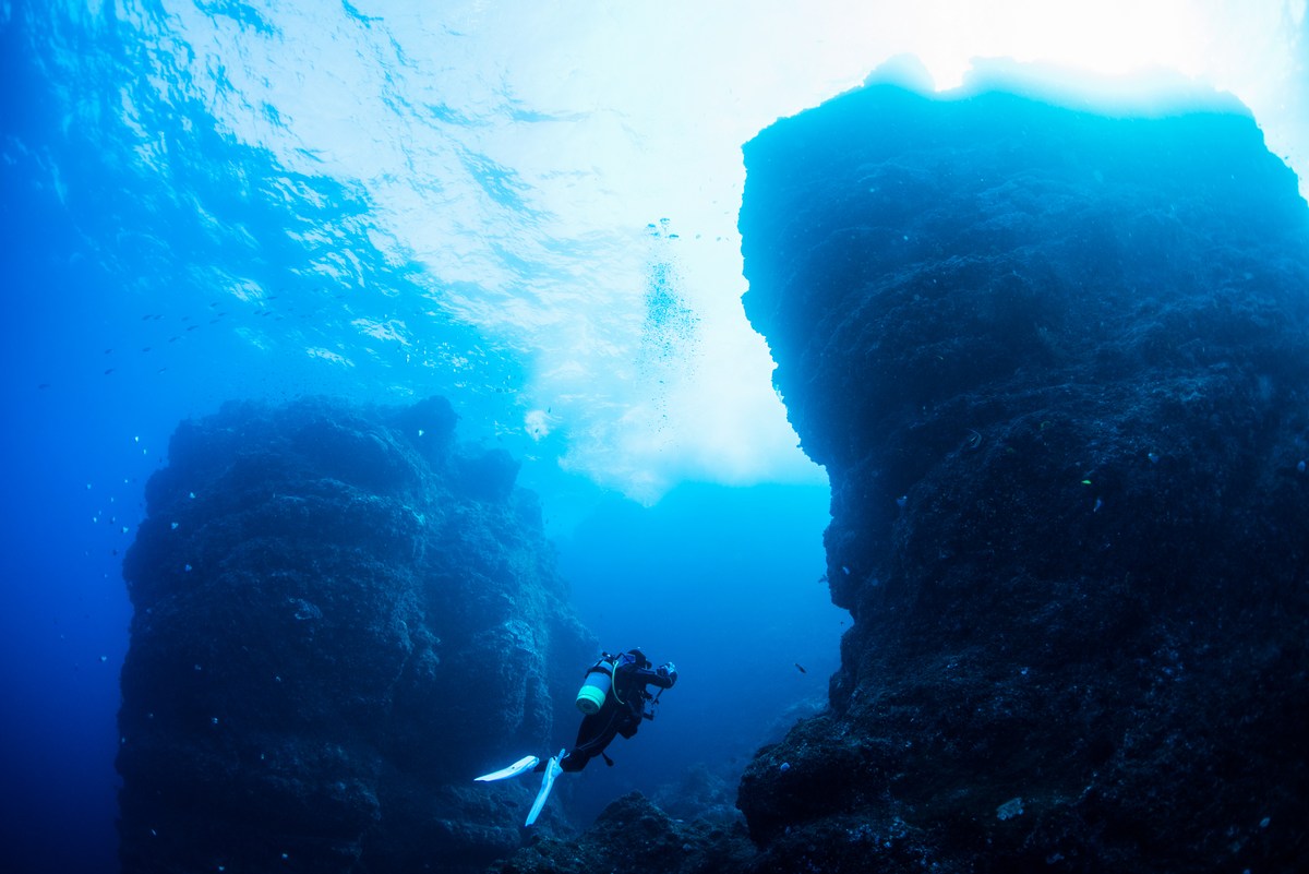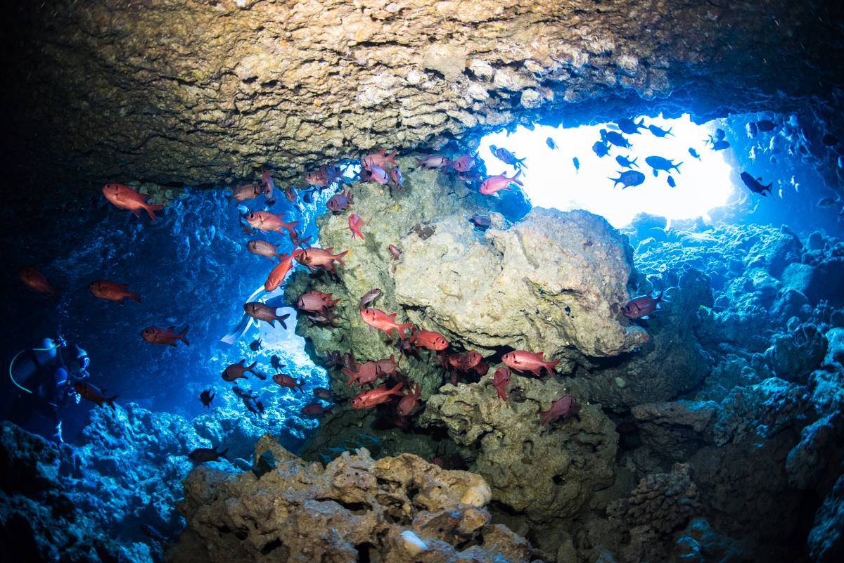 恩納村のファンダイビングでは地形の洞窟、クレパス、ドロップオフ、サンゴの群生、豊富な魚種観察が楽しめます。